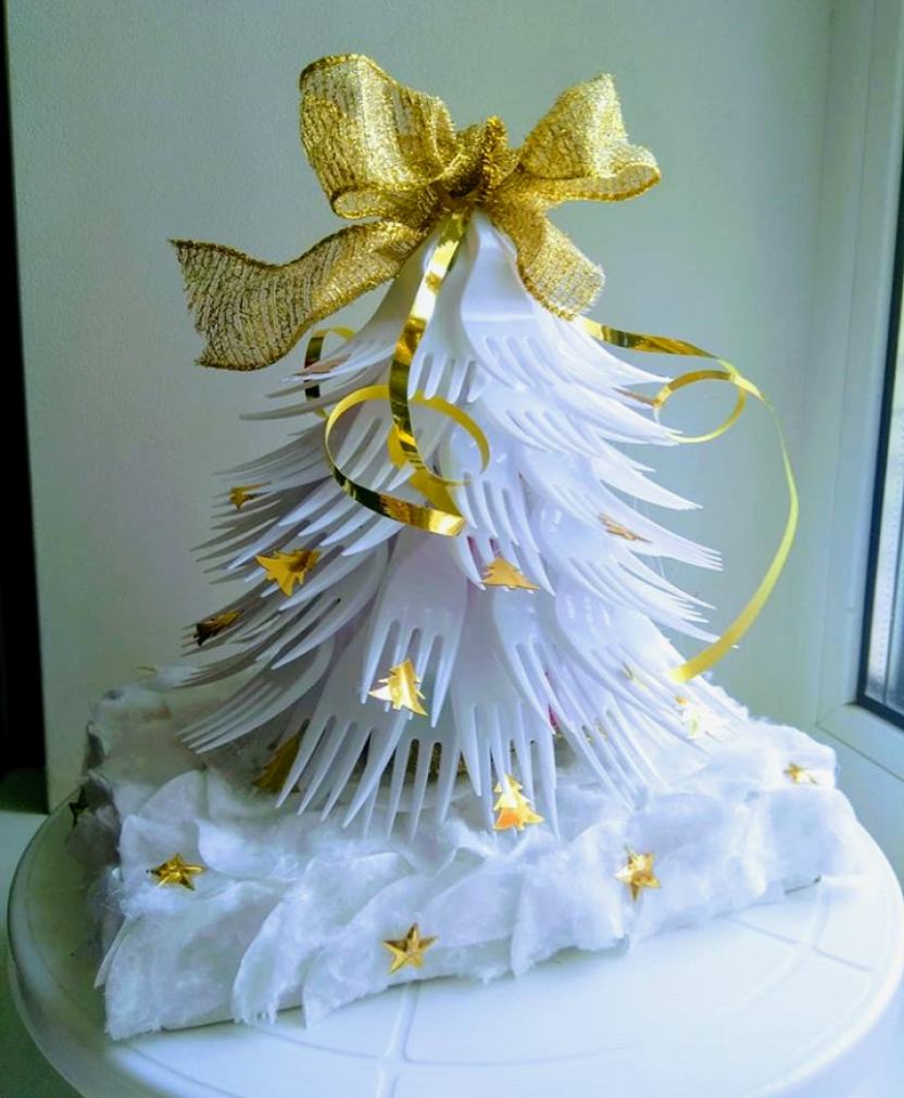 Вилки отрезаем на нужную длину, с помощью клея приклеиваем их к конусу, снизу вверх